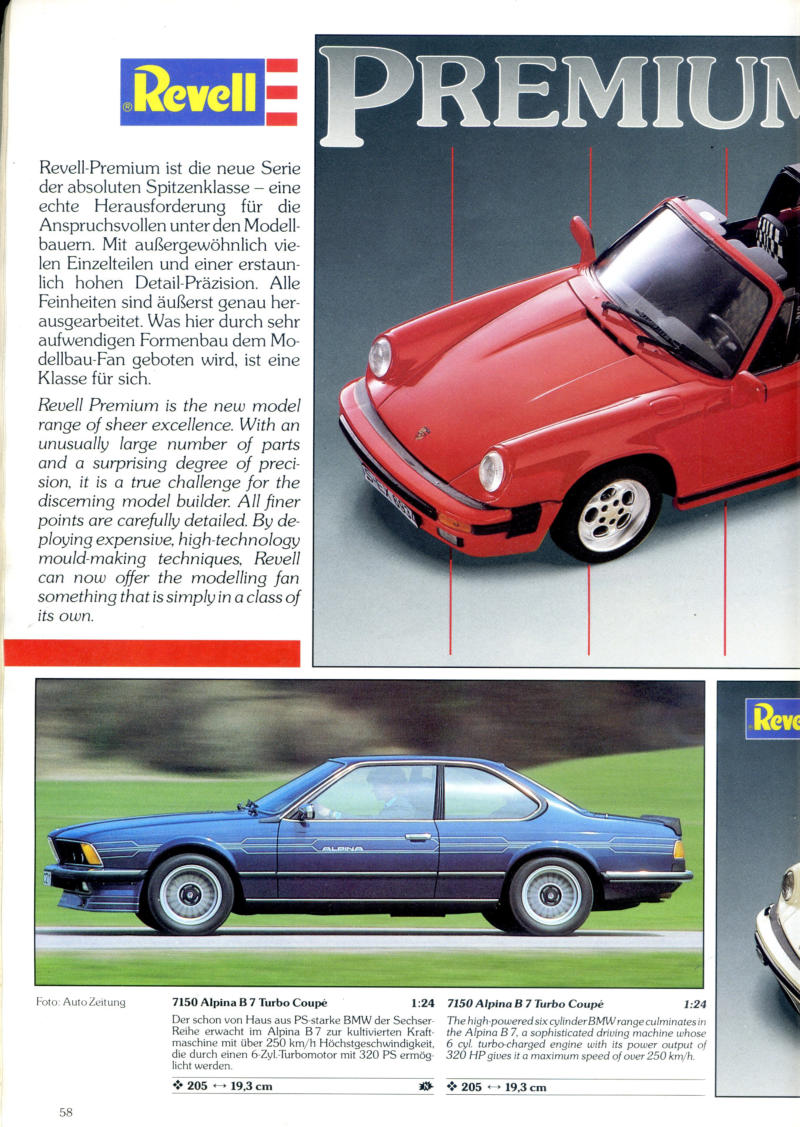 Vom BMW E24 hat REVELL/USA ca. 1987 ein Modell im Maßstab 1:24 als Alpina B7 Turbo-